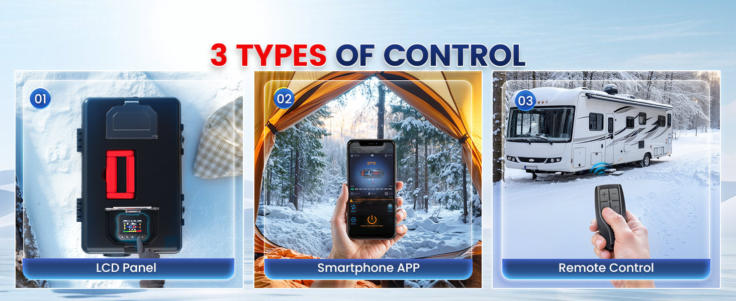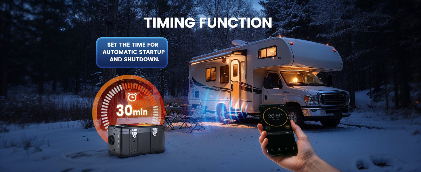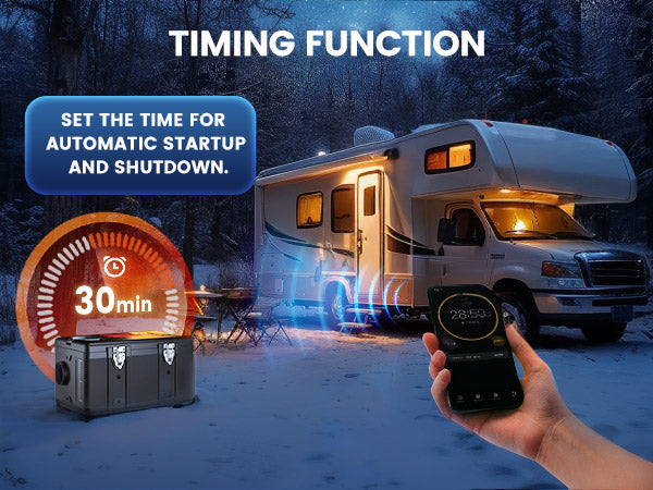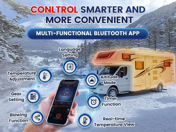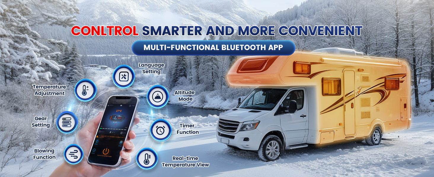 Features a 6L fuel tank, smart bluetooth control with altitude mode, and dual power input (12V/24V DC & 110V-240V AC). It quickly heats up, ensuring efficient fuel usage, and is perfect for RVs, trucks, and outdoor adventures!